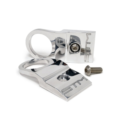 The STM Radiator Brackets for the Evo 7/8/9 are USA-made, machined aluminum and are a direct bolt-on fit to replace your ugly, stock brackets that can rust and spread the disease to the chassis of your Evo!