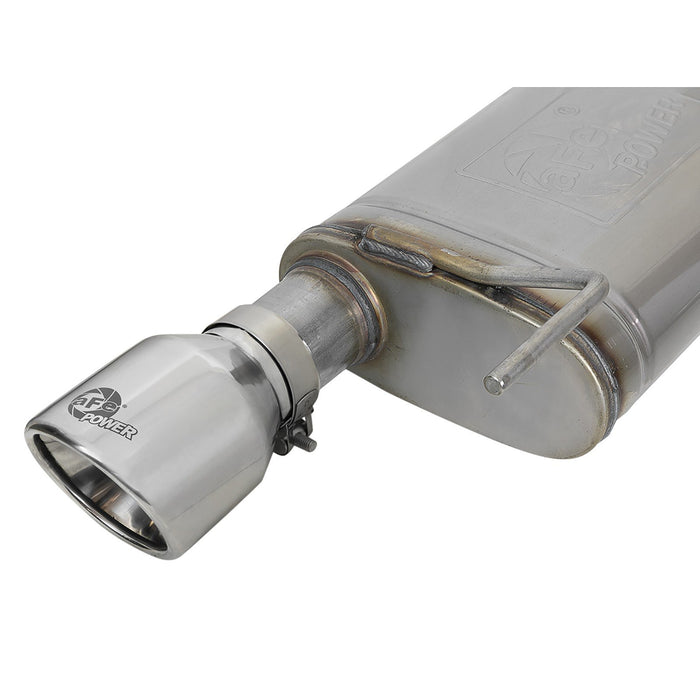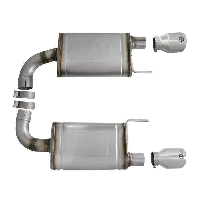 Add sound and style to your Mustang GT with this MACH Force-Xp axle-back exhaust system. Mandrel bent 409 stainless steel tubing and dual high-flow mufflers improve exhaust flow to deliver an aggressive sound. Dual 4" polished 304 stainless steel tips with laser etched aFe POWER logo complete the look of your S550. This system requires cutting and removing the factory muffler assemblies.