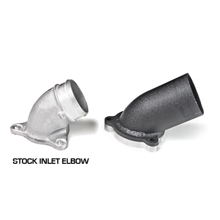 High flow compressor 3" inlet elbow for the EVO X turbo. Designed to be used on the Garrett GT3071R, GTX3071, GT3076R, GTX3076R, GTX3576R or ATP GT35R / GT3582R. 3 bolt flanged. New all cast design for further improved flow and is no longer powdercoated black. The high flow unit no longer fits the stock turbo.