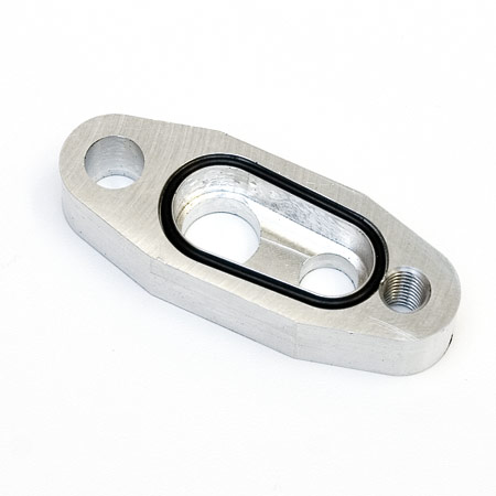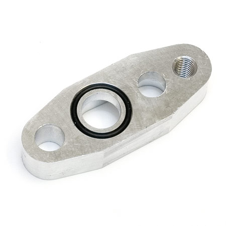Drain flange adapter kit allows original T3 or T4 flanged oil drain line to be used when switching to GT BB turbo. Flange, Gaskets and Bolts included.