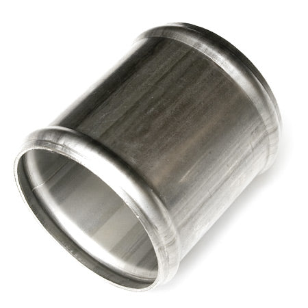 Stainless coupler, 2.5" OD with beaded lips for clamping. AOL is 2-3/4". Use for hose extension or weld and add hose tee.