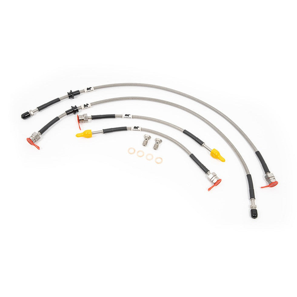 - More efficient braking- the PTFE lined, Stainless steel brake lines will not expand under load unlike OEM rubber hoses