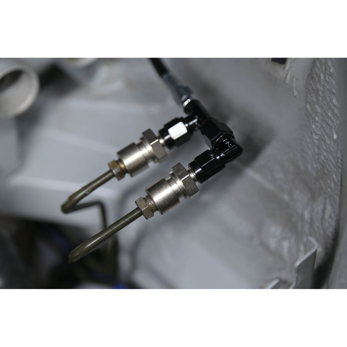 For 95-99: The factory ABS system is eliminated and there are 2 hard lines that run to the rear of the chassis. To adapt the rear lines to AN, we supply our "F Fitting" will thread into the 2 stock tube nut and sleeve adapters to make 2 lines into 1, which will then run to the Bias Valve OUT section.