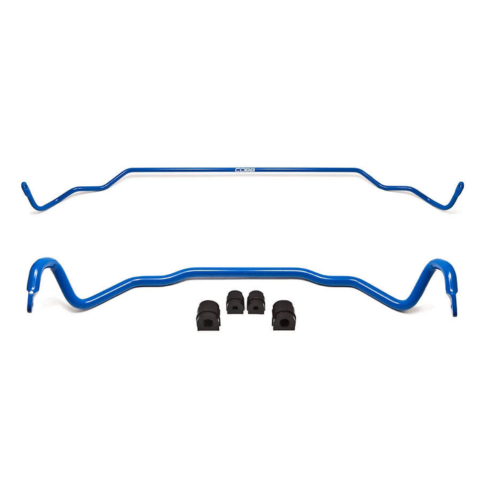 The COBB Anti-Sway Bar Kit is one of the most effective ways to improve handling without negatively affecting ride quality or NVH (Noise, Vibration, Harshness). The perfectly balanced kit has a 28mm front bar and a 15 mm rear bar to resist body-roll, sharpen turn-in response, and reduce understeer. The CNC bent anti-swaybar kit includes stiffer polyurethane bushings for instant suspension response, and all are direct factory replacements to ensure perfect OEM-like fitment without compromising performance. The COBB Tuning Anti-Sway Bar Kit is compatible with stock and most aftermarket endlinks.