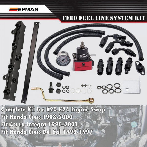 EPMAN K Swap Fuel Line System Set Fuel Rail Pressure Regulator For Honda Civic/Integra