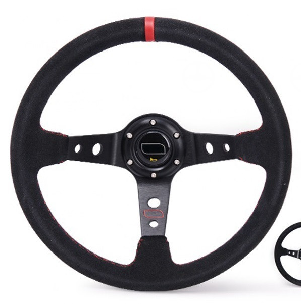 High-quality alloy steering wheel wrapped with genuine suede. Horn button and wiring included as per photos.