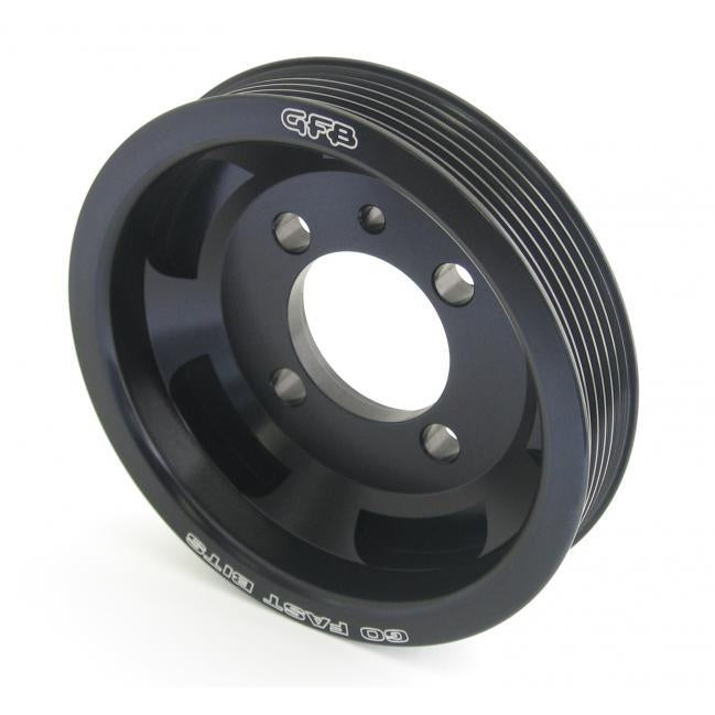 New from GFB is the Under-drive Crank Pulley for the Mitsubishi EVO VIII & IX. Like all GFB pulleys, the material used is 6000 series aluminium alloy billet, which nets a large weight saving of 1.4 kg over the factory pulley, without sacrificing strength or reliability.