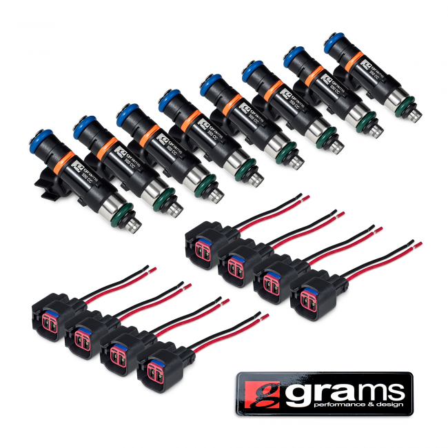 Grams Performance offers innovative, high-performance fuel injectors for today's vehicles. Designed to provide enhanced fuel flow and maximum power and performance, Grams Performance injectors are made using genuine Bosch¨ injectors, and have been subjected to rigorous dyno, street, and track testing. Each injector is individually flow tested, balanced, and dynamically matched in controlled laboratory environments using state-of-the-art equipment. Each injector utilizes ultra-fast precision solenoids and lightweight valve needles that result in a linear response curve and accurately metered fuel across a wide range of operating conditions and pulse widths.