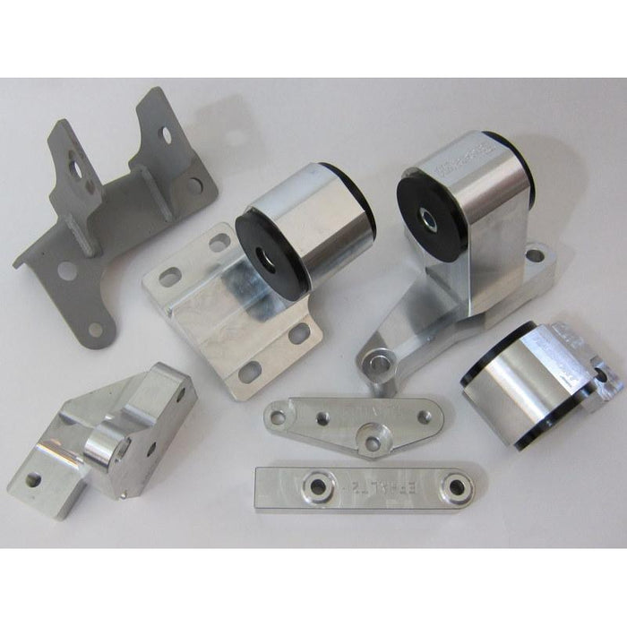 Performance mount kit for H-series engine swaps into the 88-91 Honda Civic and CRX. This mount kit greatly simplifies the procedure to swap the H-series engine with hydraulic clutch transmission into the 88-91 Civic and CRX.
