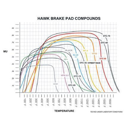 The DTC-60 compound offers high torque with less initial bite than DTC-70. It has superior release and torque control characteristics. This compound is designed for cars with high deceleration rates with or without down force. It is recommended for use with DTC-70 when split friction between front and rear axle is desired.