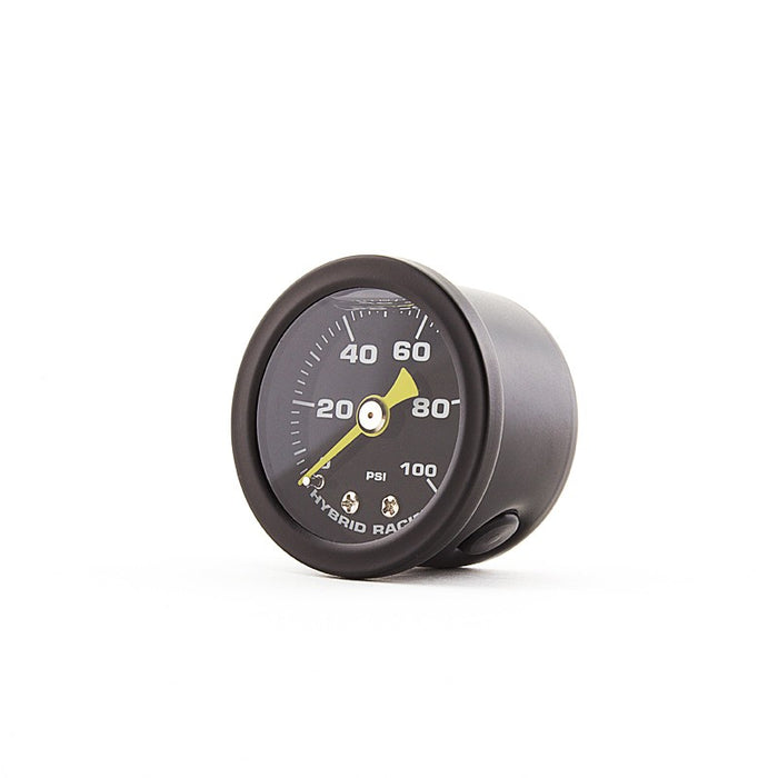 The precision-engineered Hybrid Racing fuel pressure gauge provides accurate fuel pressure readings that are critical for highly sophisticated fuel systems. They resist the most severe vibrations, offer a 0-100 psi reading and are housed in an all-steel case with a matte black finish and a Hybrid Racing Green needle.
