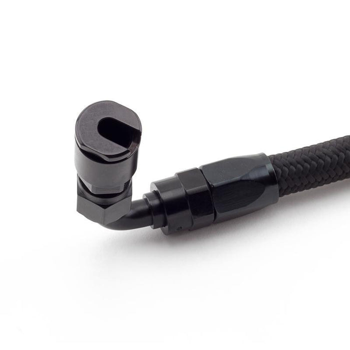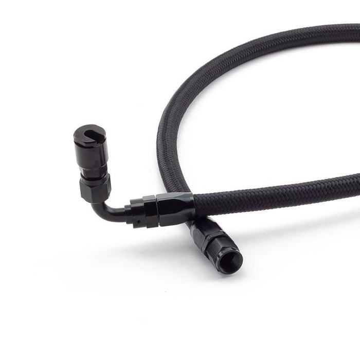This kit replaces the OEM rubber lines with a -6AN braided line. It also replaces the plastic connectors with durable aluminum connections that will stand the test of time. The line connects to the OEM hard line at the firewall using a specially designed quick disconnect fitting. You can attach the line to the fuel rail using one of the AN fittings supplied with the line. Once installed, the new line will route between your number 2 and 3 runners and neatly hug the transmission as it snakes its way to the hard line at the firewall, giving your engine bay a cleaner, less cluttered appearance.