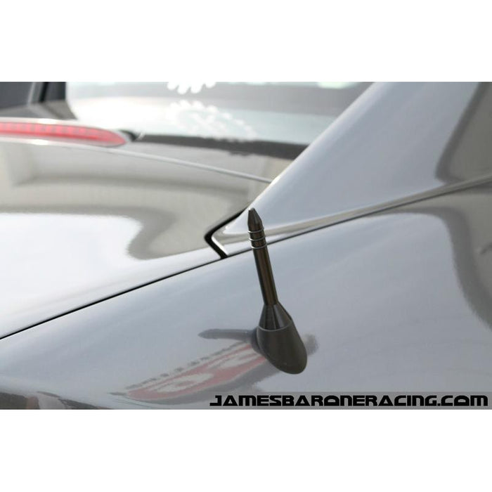 The JBR Mini Antenna replaces the silly looking, RC car antenna your Miata came from the factory with. It stands 4" tall, it's constructed from 6061 aluminum and utilizes a stainless steel threaded adapter for a lifetime of corrosion resistance.