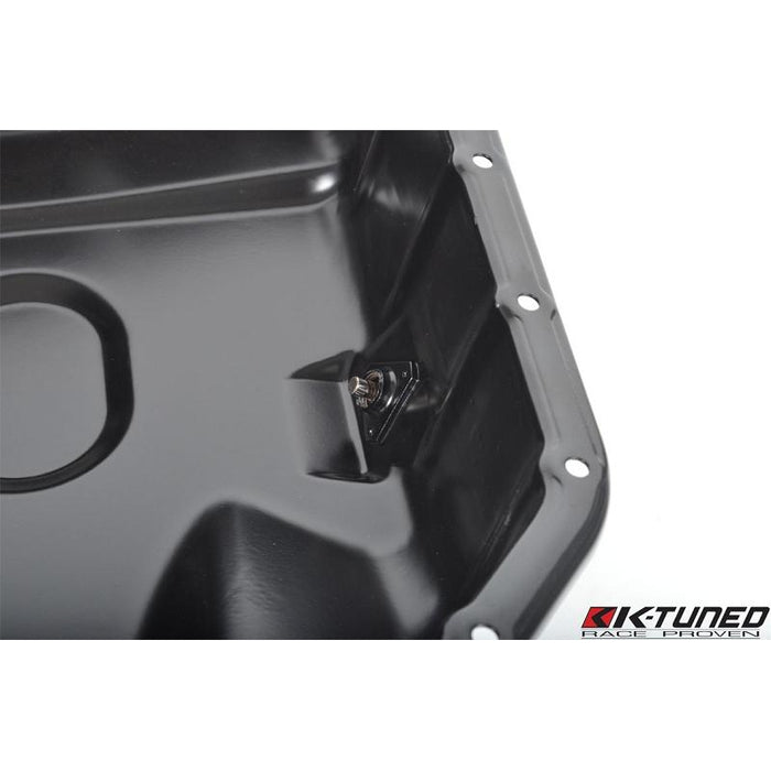 K-Tuned Oil Pans are made with thick-gauge powder-coated steel which will more than likely just dent if they get hit. Choose to buy our complete kit with oil pan, magnetic drain plug with K logo and a set of 16 bolts which are needed if installing on a K20A/A2 or Z1 engine. Most people forget or don't know that the original bolts for the aluminum pan are longer and will not work with the steel pan. The other option is to buy the pan only with no drain plug or bolts, which is perfect for guys replacing an existing damaged pan or who are building a new engine. To ensure the pan is sealed properly, we recommend using either Hondabond or Permatex Ultra Grey Sealer, part number 82194.