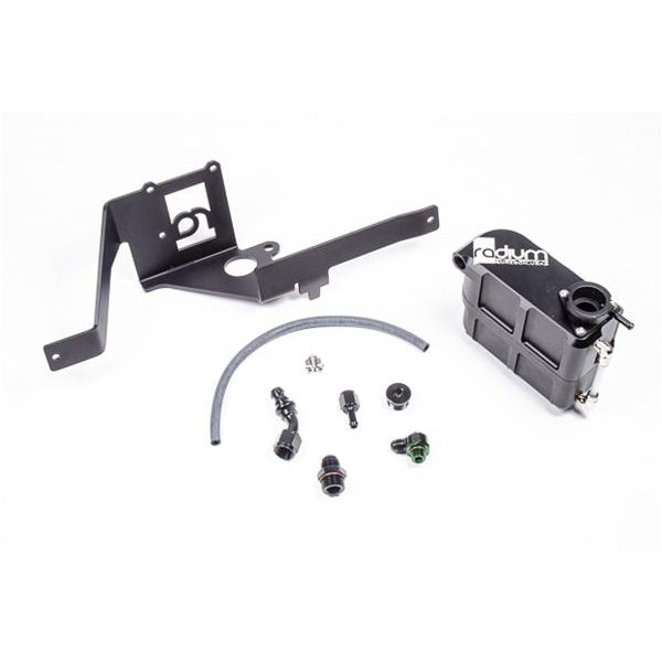 Because of continuous and intense heat cycling, plastic coolant tanks have a reputation of failing over time. Fortunately, the rugged 2-piece Radium Engineering replacement is CNC machined from aluminum and anodized for increased longevity. And because aluminum is a superior thermal conductor material, heat transfer is further improved. Additionally, the metal construction is robust enough to use in racing applications.