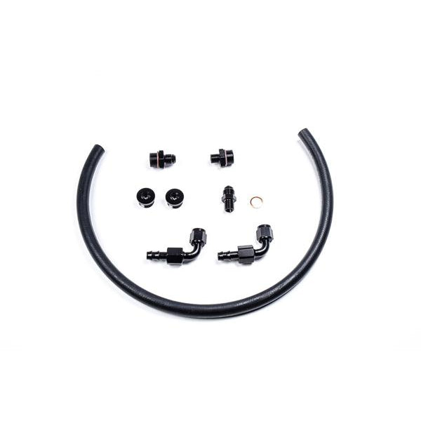This kit is a bolt-on plug and play replacement for the factory fuel rail. It is designed to be used with the OEM fuel pressure regulator and fuel pulse damper. The kit includes -6AN vapor shield hose to replace the factory feed hose from the filter to the rail. This is a good option for a quick plug-and-play installation.
