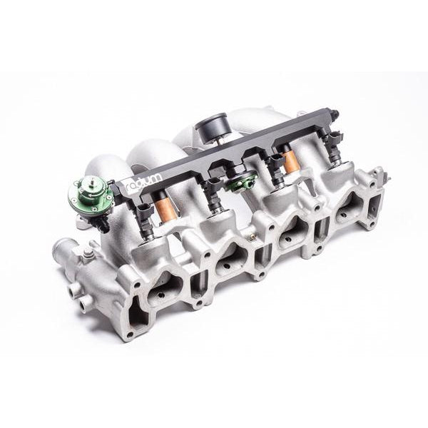 The OEM Nissan intake manifold is shown above. If planning to use with an Xcessive intake manifold, please note that the fuel rail may need to be shimmed to the proper height depending on fuel injectors used. Also, the aluminum injector seats included in this fuel rail will not be used.