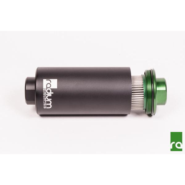 The Radium Engineering universal fuel filter is a perfect match for any application needing high flow and industry-leading filtration. Radium Engineering uses one of the largest filtration elements in the industry. This translates into a long service life and minimum flow loss, making this filter perfect for low and high-horsepower applications. The filter can be completely disassembled for servicing and replacement elements are available. Stainless steel mesh elements can be cleaned and re-used, while the microglass element is more efficient but must be replaced at the end of it's service life. The filter is designed for both carbureted and EFI fuel pressures.