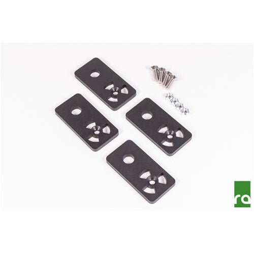 The aluminum Radium shims bolt in place for a more permanent solution using stainless steel countersink hardware.
