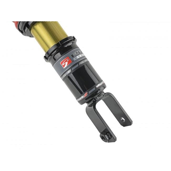 Serious club racers and discerning high performance street car owners agree that the Pro-ST's 12 way dampening, mono-tube design, threaded shock bodies with independent height/ spring pre-load adjustment, and billet top mounts w/ polyurethane bushings give them all the control they need at the track without sacrificing ride quality on the street.