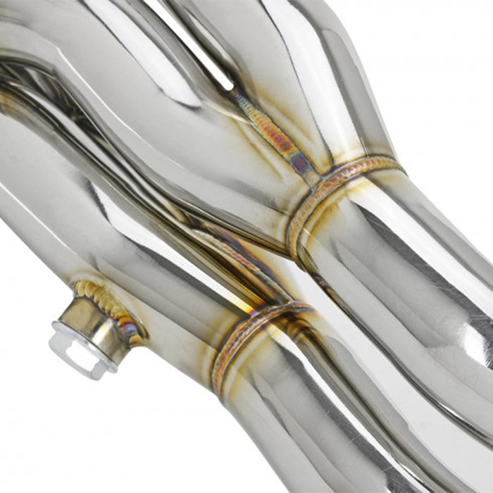 All Skunk2 Alpha headers are designed and engineered to maximize exhaust flow and increase both horsepower and torque throughout the powerband. The unique design is the result of more than a decade of racing experience coupled with computerized modeling and extensive dyno testing. Each Skunk2 Alpha Series Header features equal-length, sequentially paired, stepped primaries in a 4-2-1 tri-Y design that terminates with True Merged Collector with a 2.5-inch outlet. Skunk2's Alpha Header also include 02 bungs for OEM and aftermarket sensors. Each header is constructed from stainless steel with mandrel-bent tubing for strength, corrosion resistance and durability. The Skunk2 Alpha D-Series header also includes a donut gasket and a weld on exhaust flange, this included flange can be utilized as an option to weld the Alpha Header to an aftermarket exhaust.