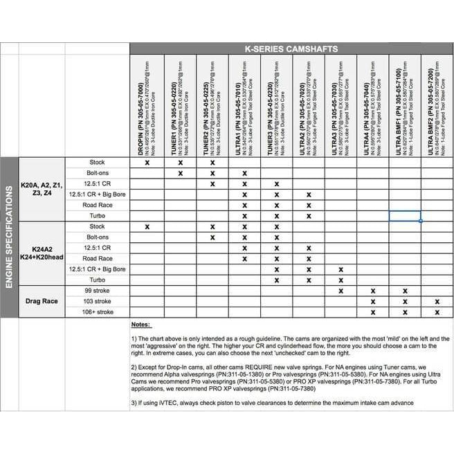 Up to 80 hp gains with Skunk2’s Ultra Series line of camshafts, our professional line of high-lift, racing camshafts for Honda’s K-series VTEC engines. Ultra Camshafts are designed to optimize mid-range and top-end horsepower and torque, with peak power moved up the RPM band. As a result, VTEC crossover is seamless, allowing for the broadest powerband possible. No other line of racing camshafts even comes close to Skunk2’s Ultra Series.