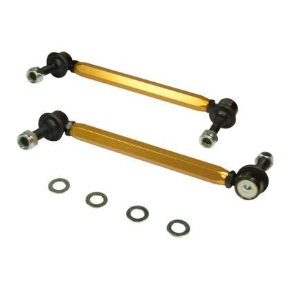 Not many enthusiasts are aware that OE and more importantly aftermarket sway bar effectiveness can be hindered by worn or inadequate mounts, drop links and lateral stoppers. Whiteline adjustable sway bar links are engineered to be up to the task with top spec, light weight componentry combined with a window of adjustability, eliminating sway bar preload on installation but most importantly ensuring the maximum output of the sway bar for improved grip and better handling.