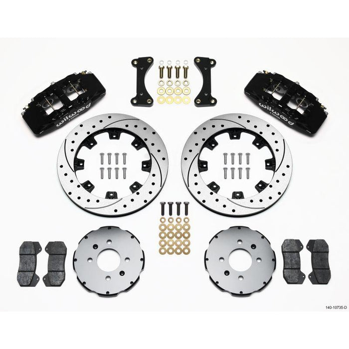 The enhanced brake capacity and pad performance of the DynaPro 6 forged billet six-piston caliper is combined with 12.19" diameter rotors for this group of front wheel drive sport compact kits.