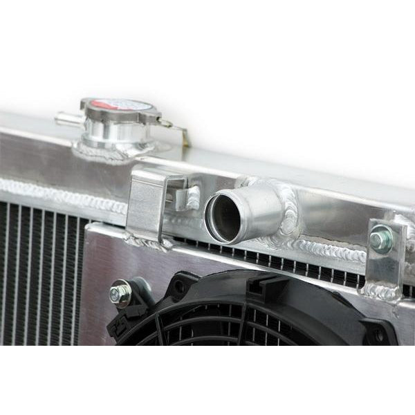 This is a 100% aluminum dual core lightweight radiator with aluminum end tanks w/ fan shroud kit. It can also accept aftermarket fans. It is designed to replace the OEM radiator for the Acura Integra from 1990-1993. A new radiator cap and drain plug are included. All cores are polished to a mirror finish. Manual transmission only.